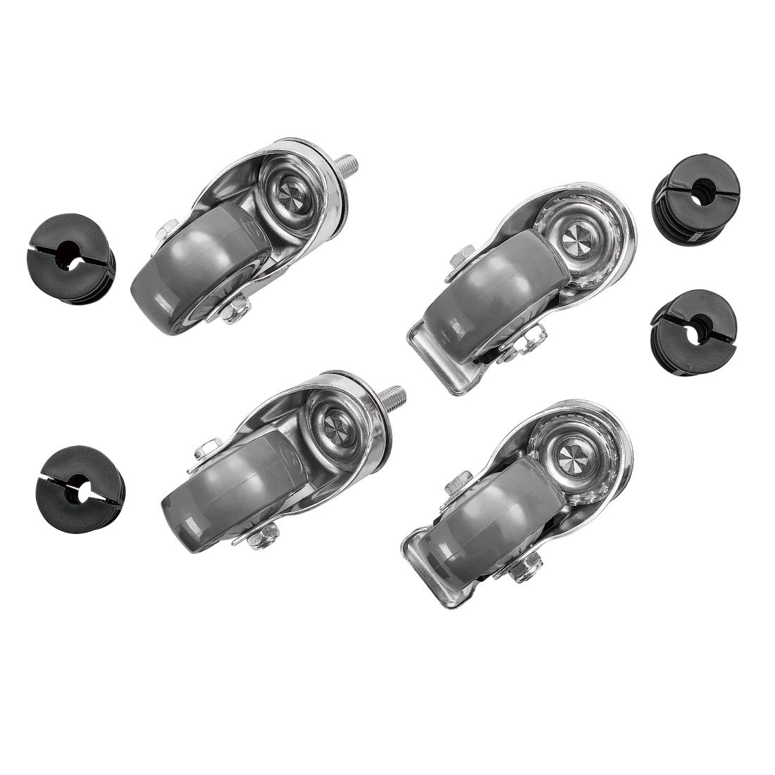 - 2 gebremste und 2 ungebremste Rollen