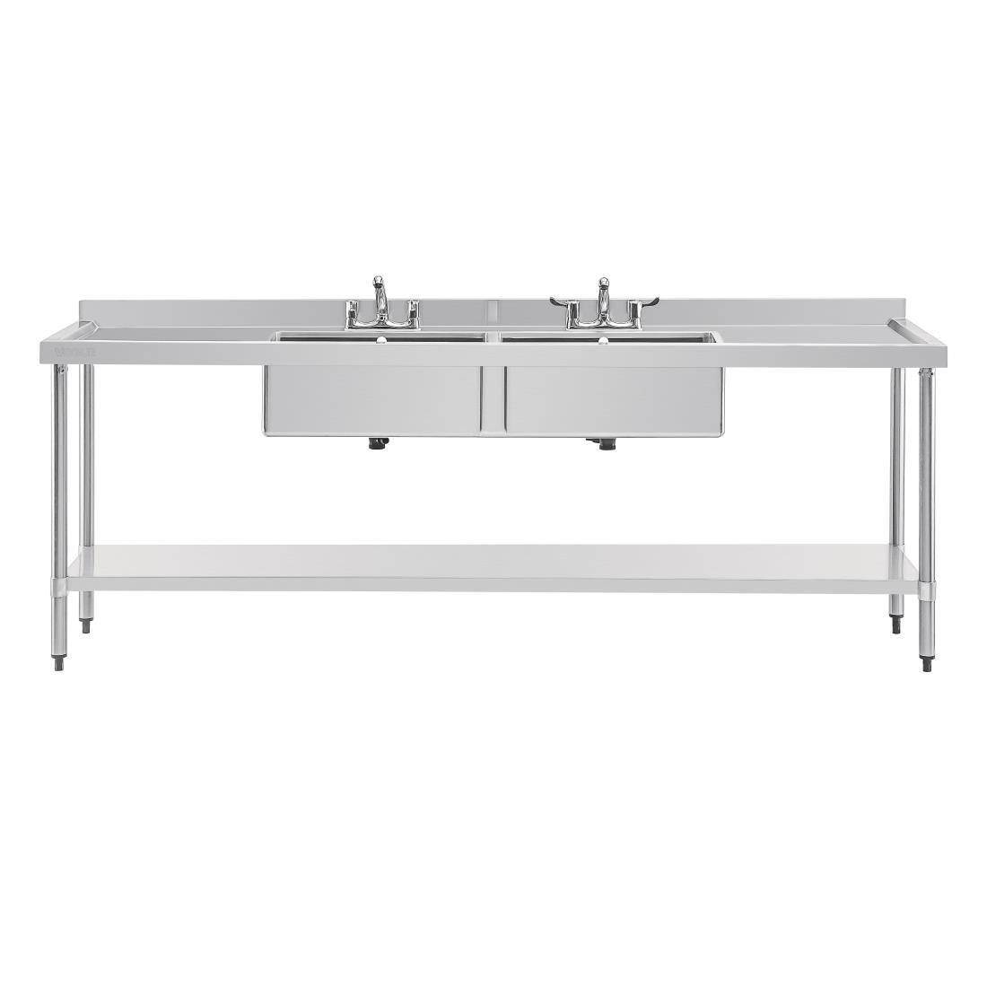 - Geeignet für Armatur Y770 | mit Aufkantung und Regalboden | Edelstahl | 90 x 240 x 60cm | 2 Becken in der Mitte