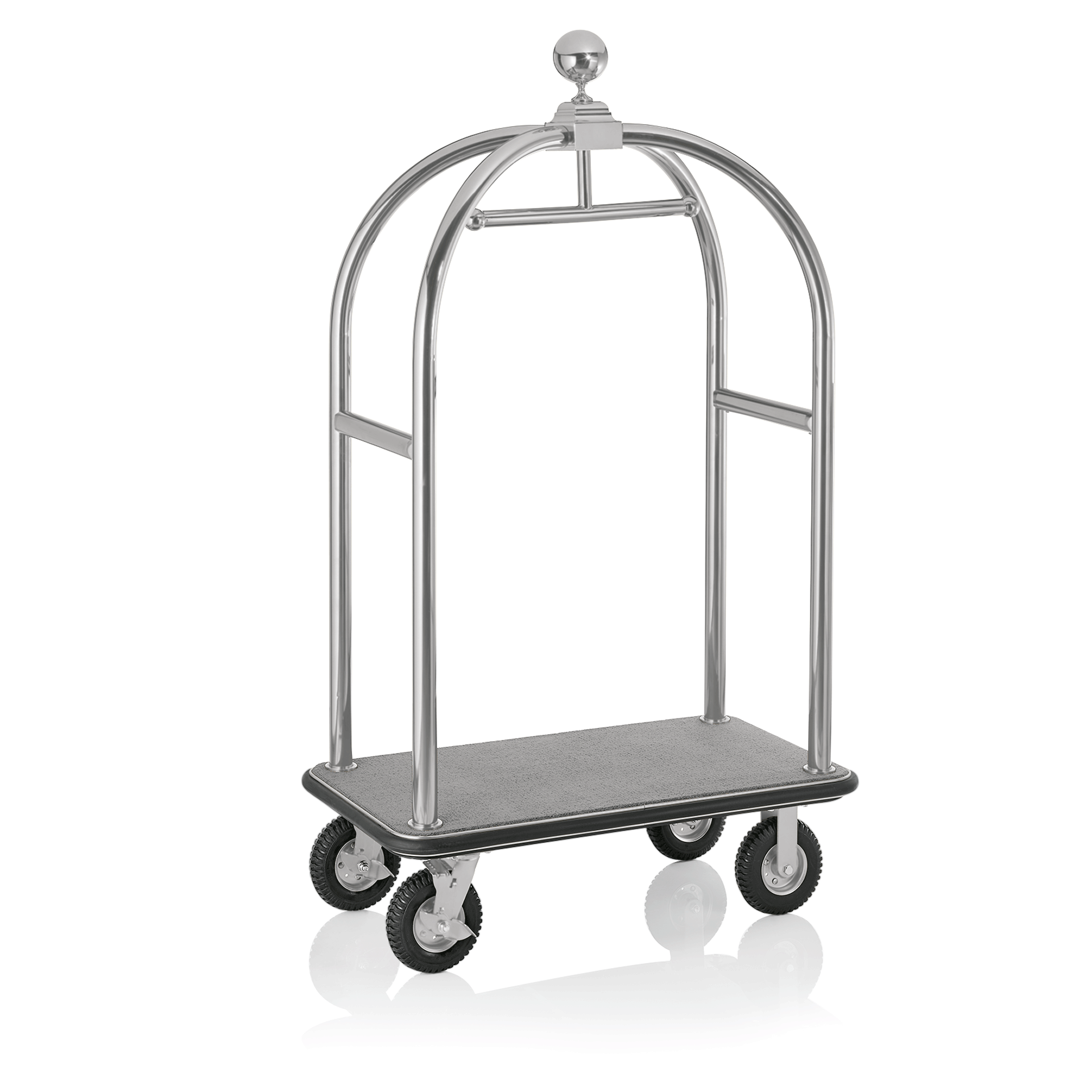Was Germany Gepäckwagen DRIFT, 112 x 60 x 190 cm, silberfarben gebürstet, grauer Teppich, Chromnickelstahl 18/8