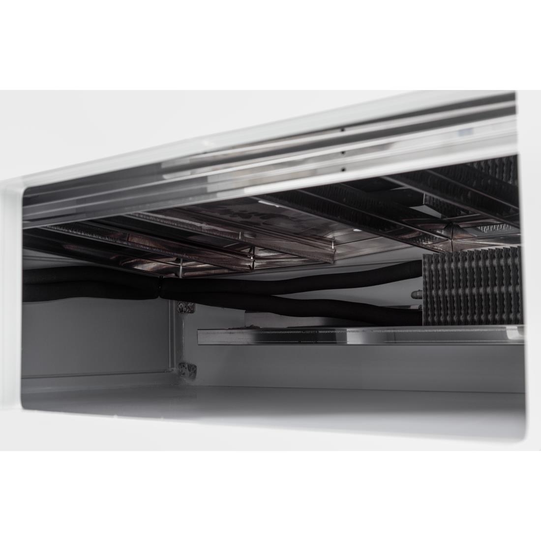 - Gerade gehärtete Frontglasscheibe schützt die Ausstellung und verbessert die Hygiene. Bodenscharnier für einfache Reinigung