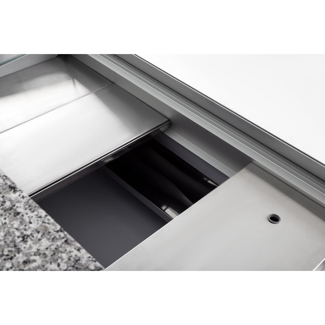 - Rückseitige Edelstahl-Arbeitsplatte: 900(H)x1385(B)x280(T)mm. Stilvoll und langlebig